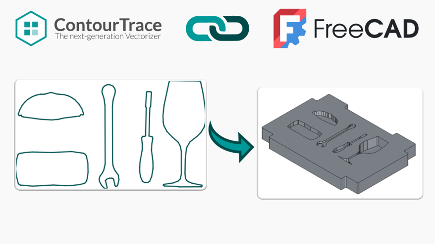 Export contours from ContourTrace as a FreeCAD macro that can be loaded and executed in FreeCAD to automatically generate 3D models from the extracted contours.